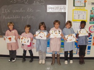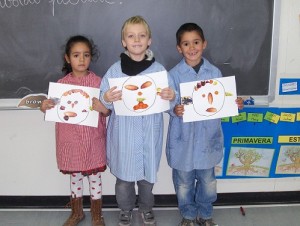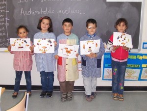 El primer conte que hem explicat és “The very hungry caterpillar”. A partir d’aquest, hem estudiat les fruites de la tardor i ens hem ficat a la pell de l’Arcimboldo (un pintor italià conegut perquè dibuixava els rostres humans a partir de fruites, flors, fulles…) per fer les nostres composicions a partir de fruites i fruits de la tardor que hem estudiat. Els alumnes de 1r us mostren les seves composicions.