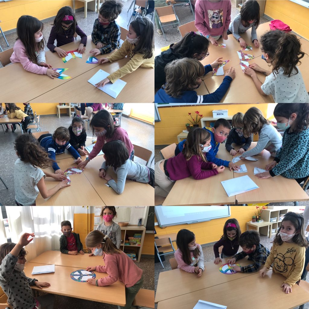 HEM FET UNA DINÀMICA EN PETITS GRUPS. HAVÍEM DE CONSTRUIR A PARTIR D’UN TRENCACLOSQUES EL SÍMBOL DE LA PAU, PERÒ NO PODÍEM PARLAR!!! ENS HAVÍEM DE COMUNICAR AMB GESTOS!