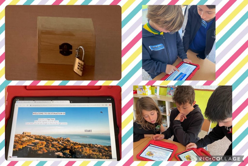 We did a escape room related with Nelson Mandela, we dressed up and danced like we were in a theatre play, we drew landscapes about important places in South Africa and we solve some challanges about Kruger National Park.