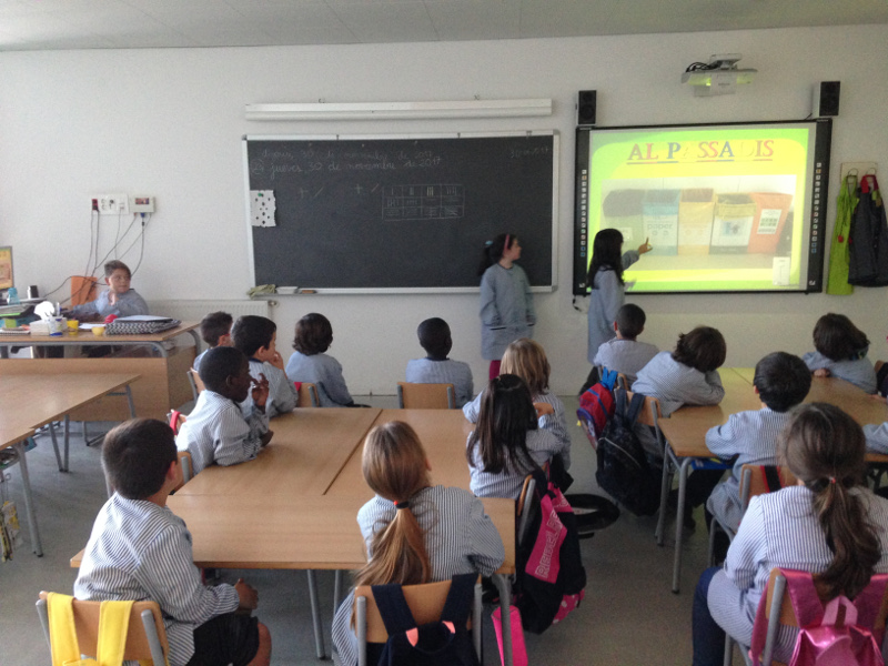 Els delegats ambientals de sisè, juntament amb uns acompanyants, han anat a les classes de primer a fer una xerrada informativa sobre com reciclar els residus a l’escola correctament. Ens van fer una presentació amb les pissarres digitals i van resoldre tots els dubtes dels alumnes de primer en el torn obert de preguntes. Ha sigut molt enriquidor per tots!