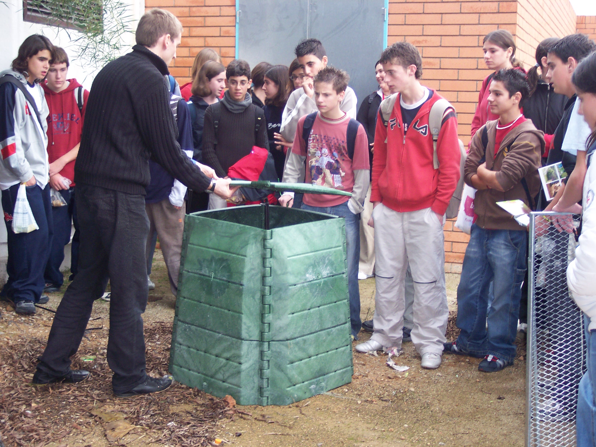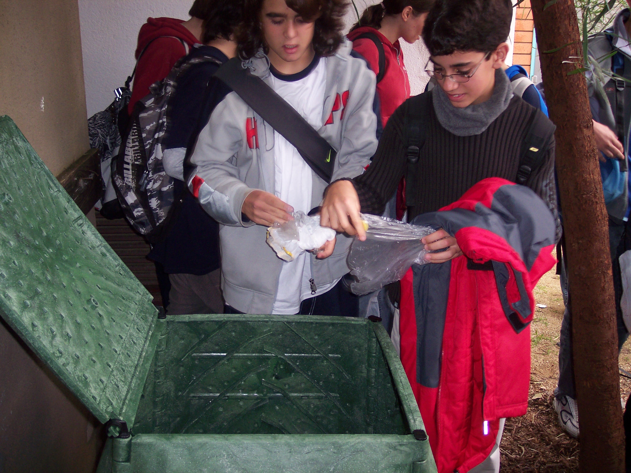 La matèria orgànica necessària la subministra la poda dels arbrets i vegetació del propi institut així com, restes de menjar del menjador escolar.