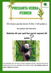 - Els óssos panda tenen 5 dits i 1 dit polze a les potes del davant. Sabries dir per què fan servir aquest dit polze?