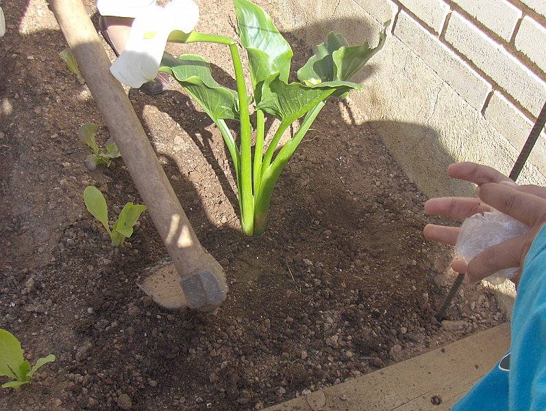 Primer ens ho vam mirar bastant. On podia anar? No és fàcil: que tingui sol, que no li toqui gaire el vent, que estigui resguardat de pilotades i altres petits incidents… Al final vam trobar el lloc ideal, però com hi havia molta pedra es va haver de cavar i fer un bon forat abans de posar terra bona.