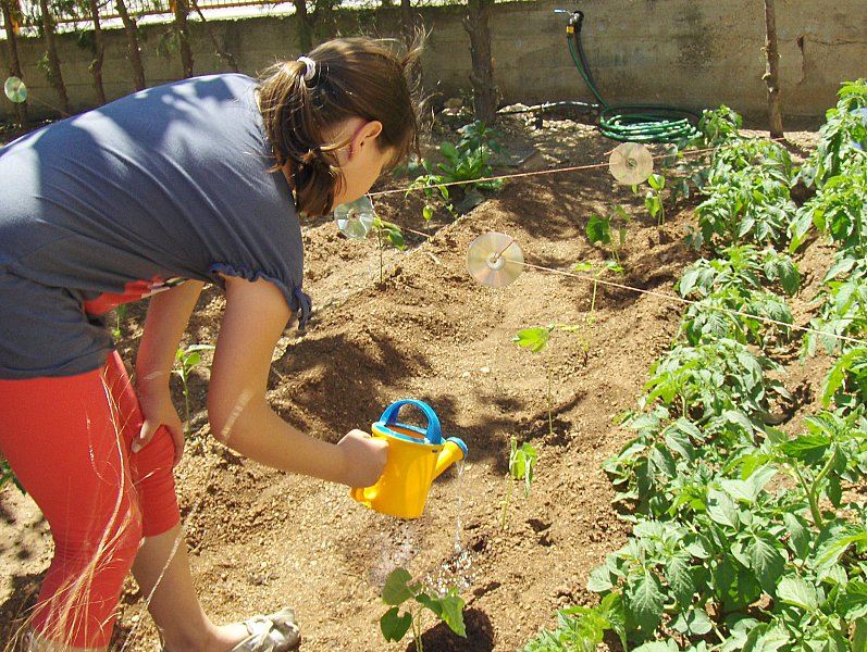 Ara ja tenim un petit hort amb enciams, primentons, cebes i tomates. També hem portat unes paperines i les hem plantat a les vores. Tot i que aquests primeres dies anem una mica desorientats ens ho estem agafant amb moltes ganes.