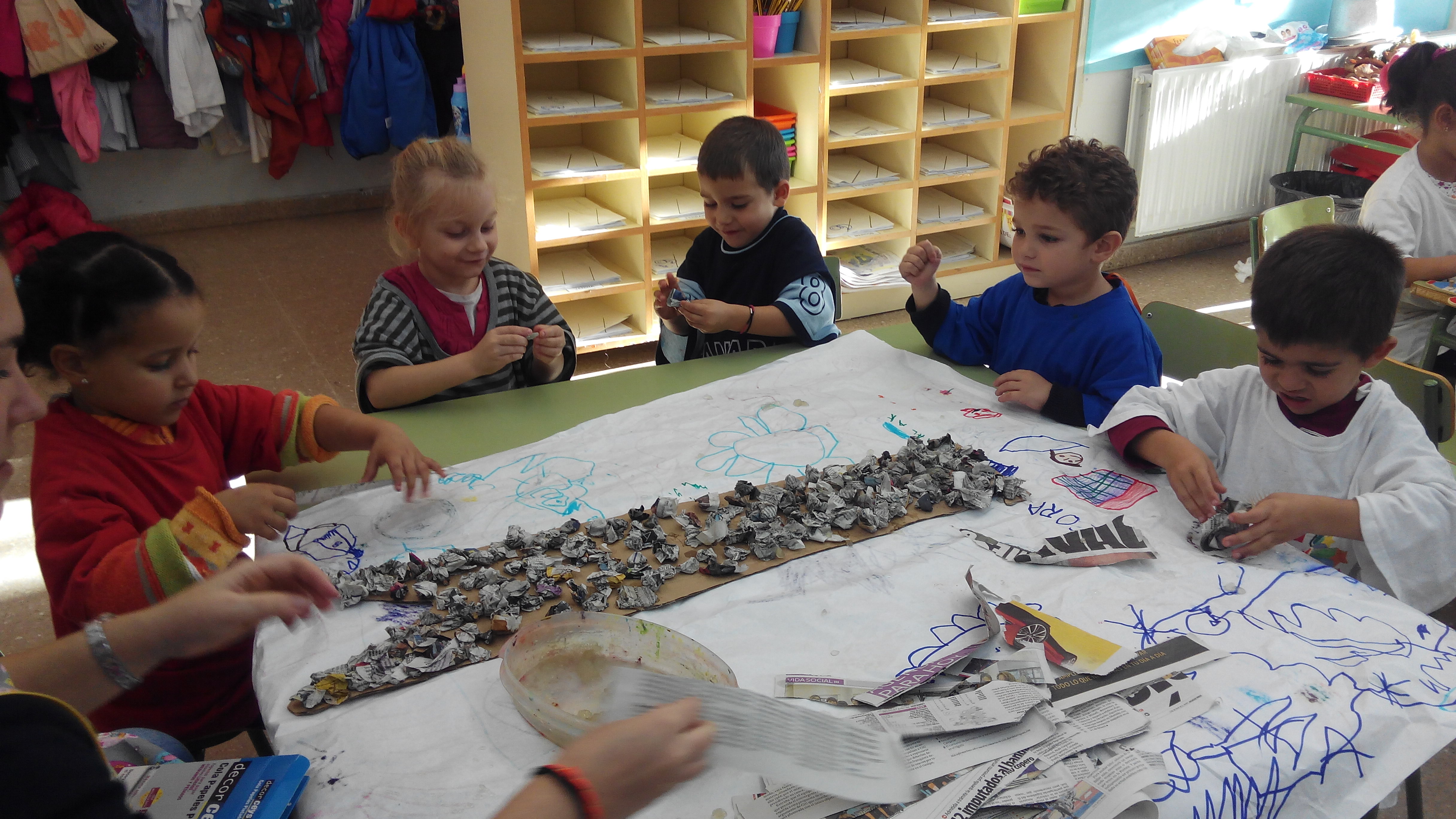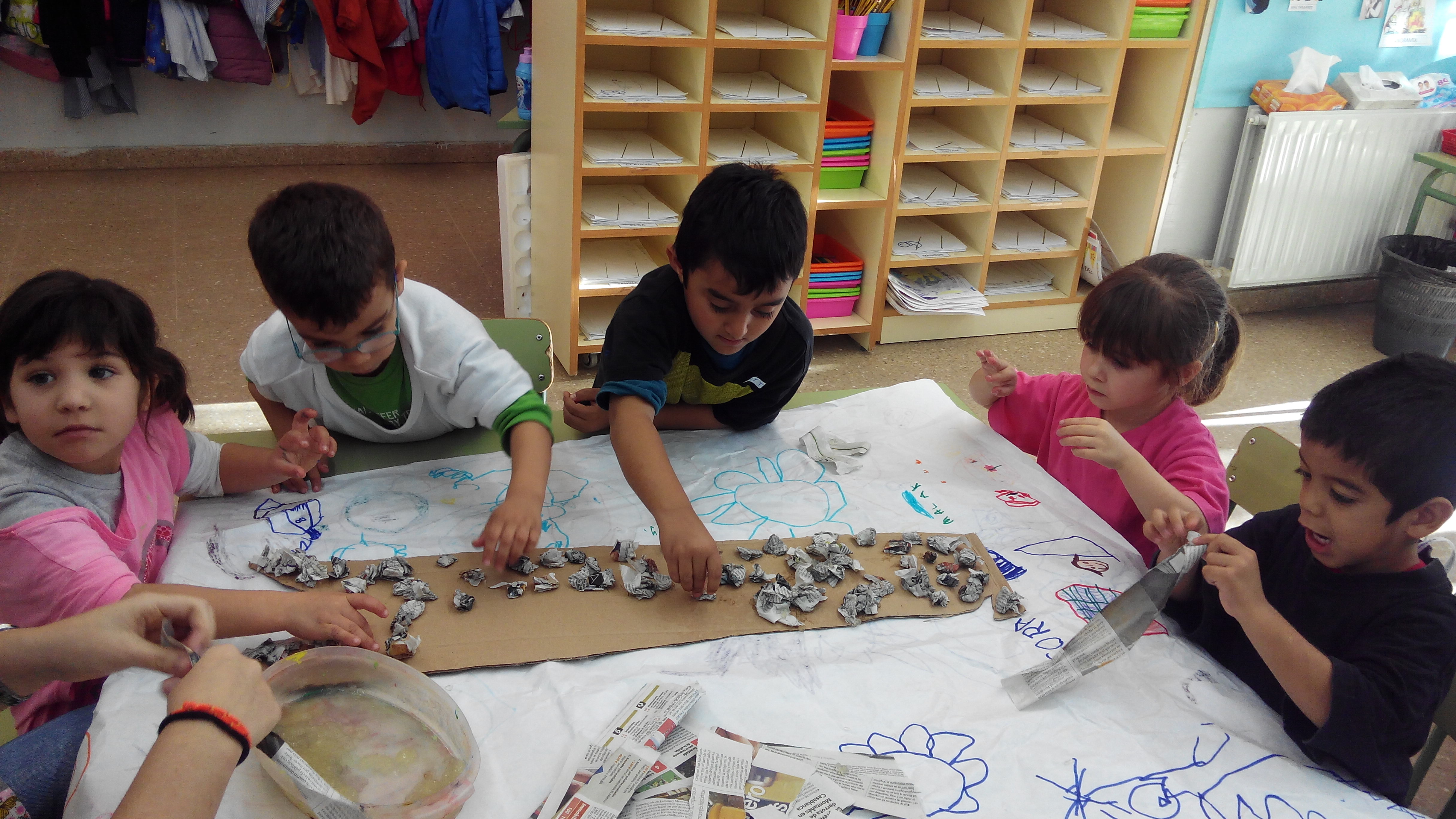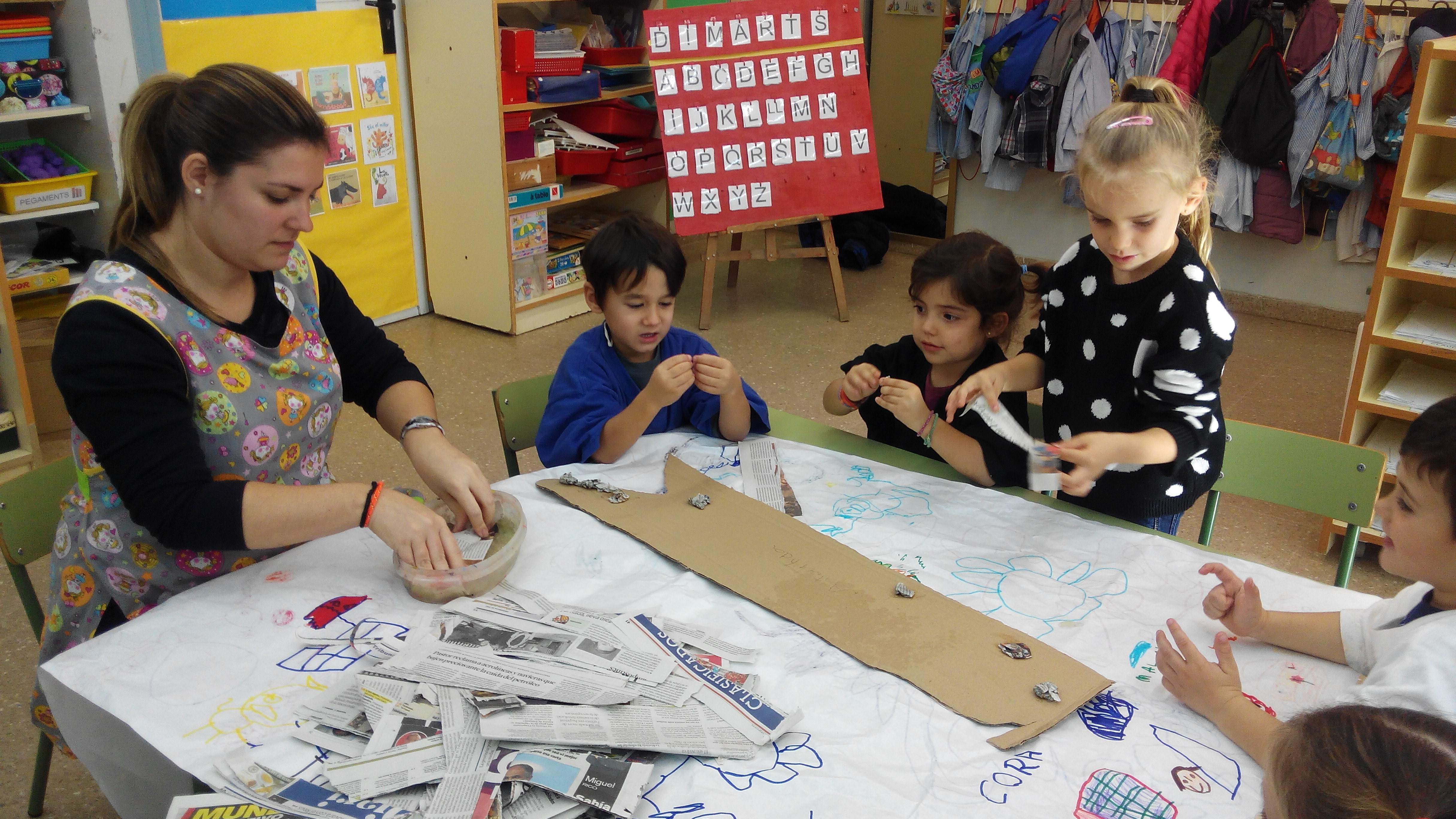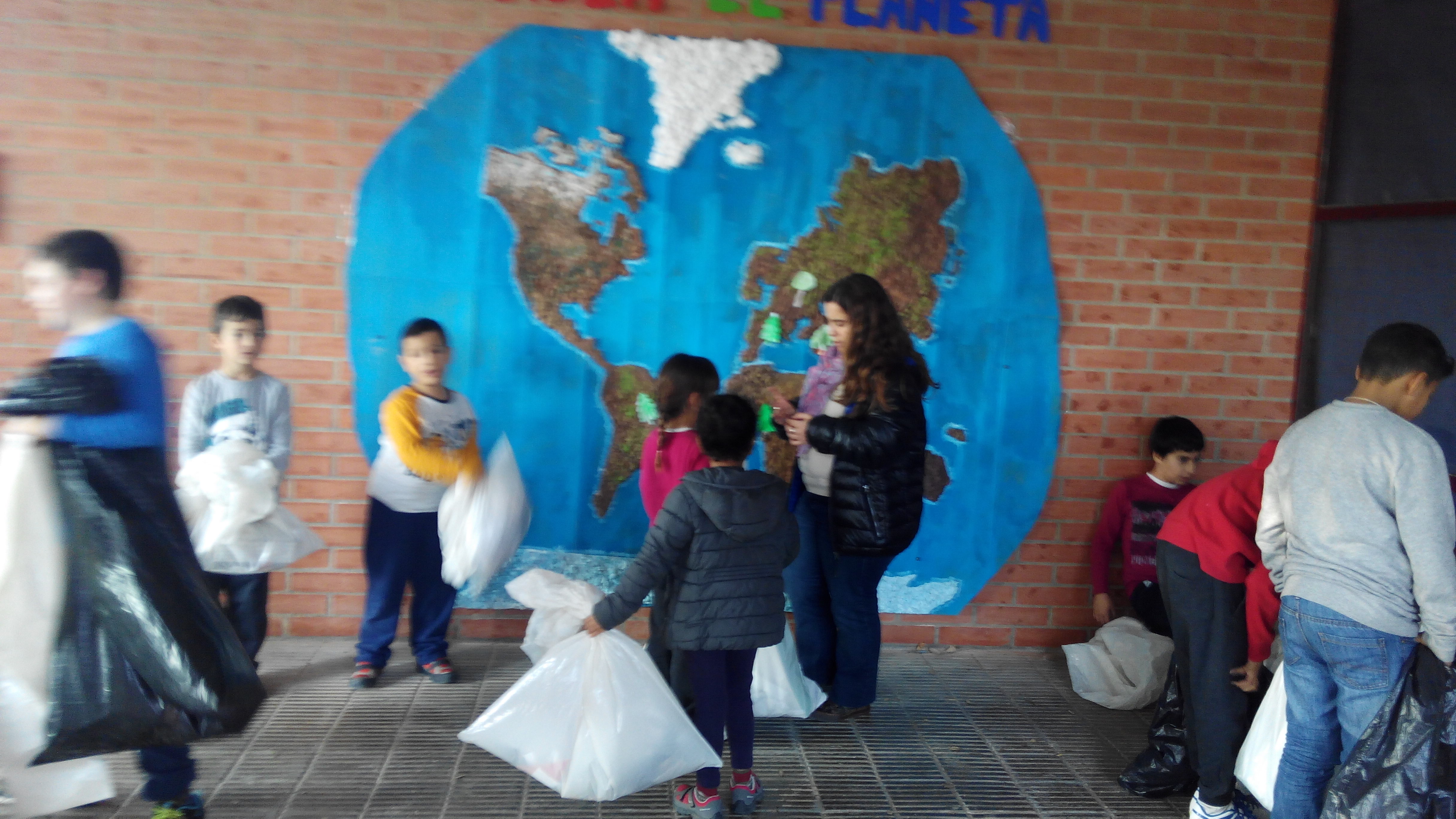 Després de diverses setmanes elaborant el mapa del món (a partir de cartró,paper de diari i cola d’enganxar), divendres 4 de desembre finalment vam poder engegar el nou projecte de reciclatge proposat des de la comissió d’escoles verdes.