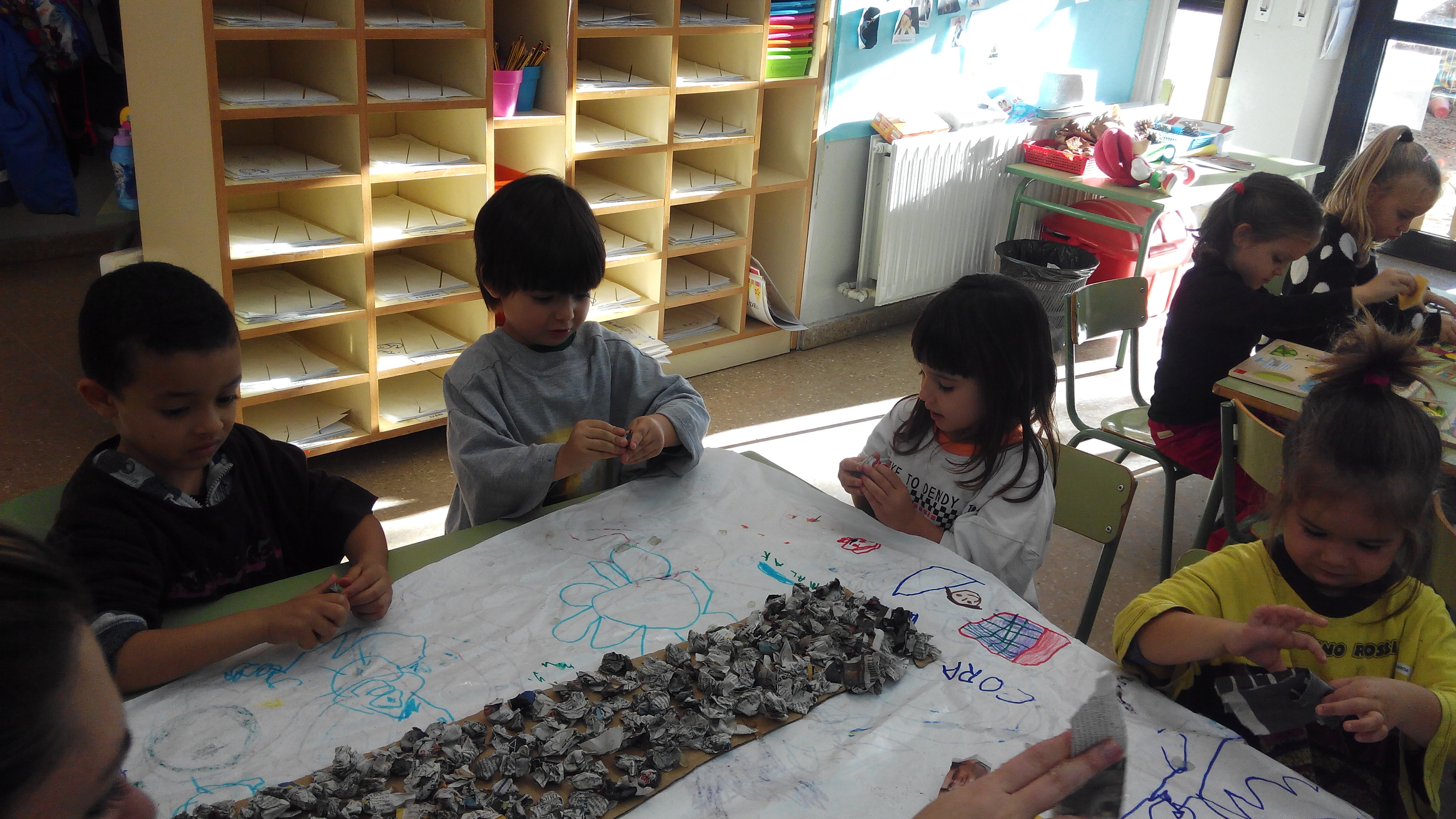Un projecte on pretenem fonamentalment que tant els infants com la resta de la comunitat educativa prengui consciència de la necessitat de cuidar i preservar els nostre entorn i concretament, els nostres boscos. Així doncs, cada divendres valorem i motivem els alumnes per tal que redueixin el consum de paper a les aules i que respectin la classificació tant del plàstic com del paper. D’aquesta manera, els hi oferim la possibilitat de repoblar el mapa del món situat al porxo de l’escola amb arbres elaborats per ells mateixos.