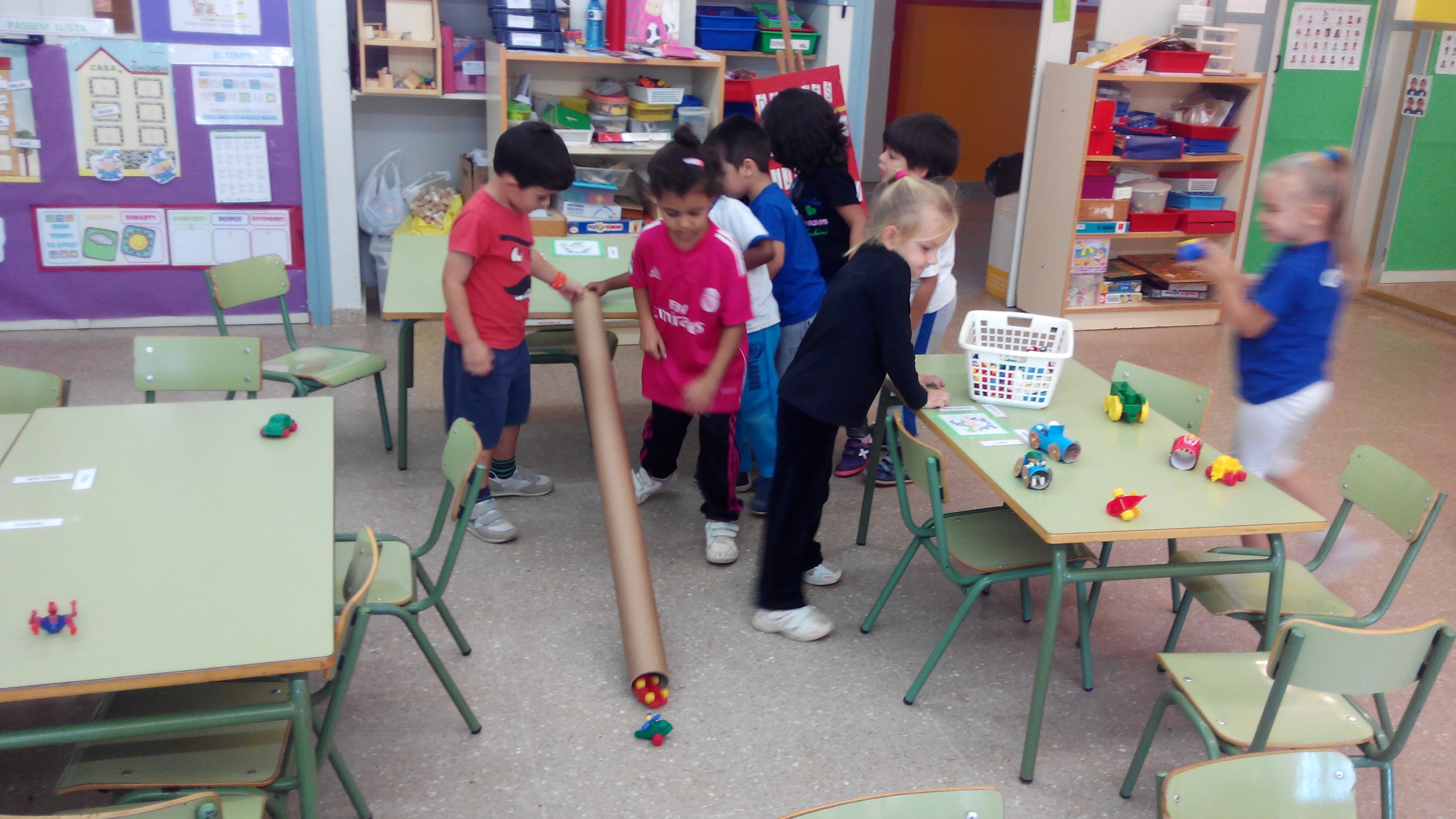 Un cop acabats, els animem a què juguin amb cotxes fent-los passar per túnels de cartró, rampes i pel mateix tobogan del pati. Una excusa perfecte per a què els infants facin les seves hipòtesis i reflexionin sobre l’experiència (quin cotxe baixarà més ràpid? veurem abans els cotxe que ha entrat pel túnel curt o pel llarg?…) S’ho van passar genial!!