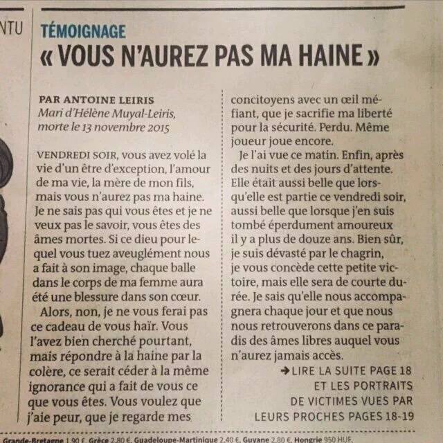 Voici une carte du lecteur apparue aujourd’hui dans la presse à propos des assauts de vendredi à Paris.