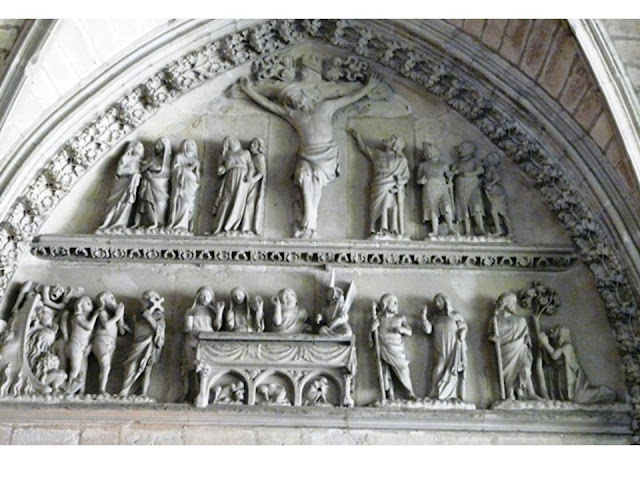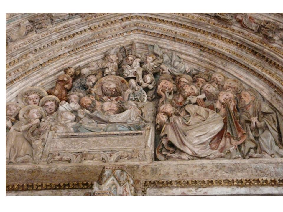 | timpà de la porta del Amparo que reprodueix la dormició de la Verge. |