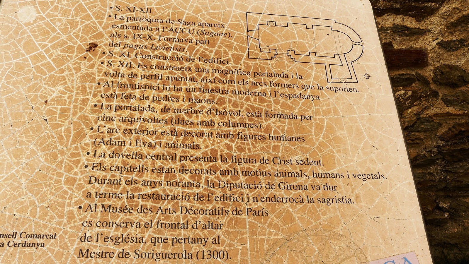 - Santa Eugènia de Saga. Al Museu d’Arts Decoratives de París es conserva d’aquesta església, un frontal d’altar del segle XIII, atribuït al mestre de Soriguerola, relatant la vida de Santa Eugènia.