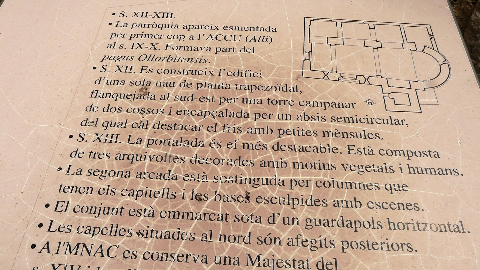 És una església de planta trapezoïdal d’única nau amb l’absis semicircular precedit de l’espai presbiterial. La part més antiga (segles X-XI) és el mur de tramuntana de la nau. En el segle XII es cobreix aamb una volta de canó (desapareguda), per la qual cosa les parets van haver de ser reforçades amb arcs formers, i s’aixeca l’absis amb una finestra de doble esqueixada i dues absidioles laterals disposades en creu (inapreciables des de l’exterior).