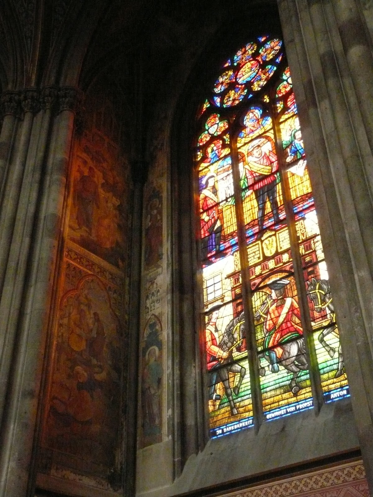 col·laboració amb F. Matsch i el seu germà Ernst en el treball d’unes vidrieres de l’església votiva de Viena, la primera gran construcció de la Ringstrasse.