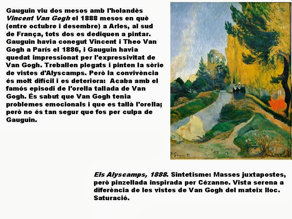 Vegem ara amb més detall l’obra d’aquests artistes post-impressionistes, a excepció de Cézanne que ja hem estudiat a l’entrada anterior. Comencem per Gauguin, seguirem per Van Gogh i a continuació veurem l’obra peculiar de Tolulousse-Lautrec.