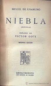 1914 Niebla Temes esmentats: el destí i el lliure arbritri, l’ànsia d’immortalitat… concepte de nivola per trencar amb el tradicional de novel·la. Afirma que l’existència precedeix a l’essència. Els personatges creen a l’autor? Influència de Pirandello.