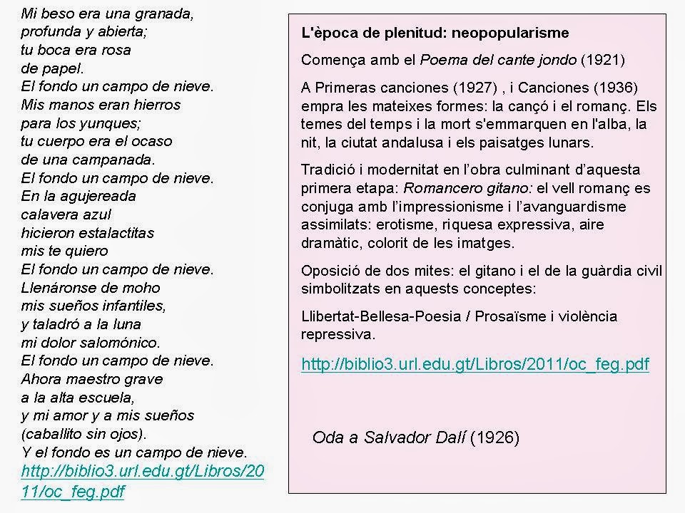 Seguirem amb els poetes del grup poètic del 27 en les següents entrades.