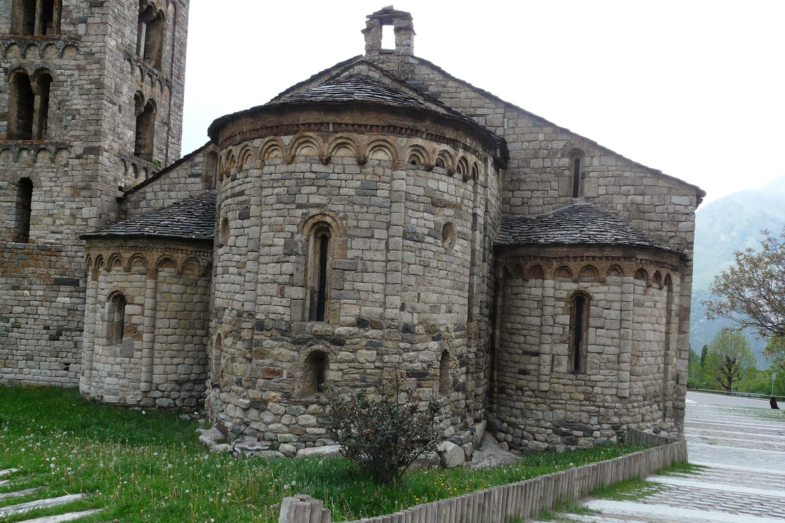 La decoració llombarda de l’exterior situa l’església en una modernitat que s’havia estès ja per les regions italianes de Màntua i Verona.