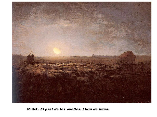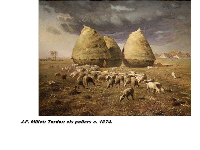 Els dos homes conversaven catxassudament; sense fixar-s’hi, ella entressentí els mots fredor… tristesa… vedells… massa alt… però no va saber de què parlaven perquè el cor i el pensament li fugien del carro, entornant-se-n’hi cap a la terra. Mes l’encís ja estava romput i la terra, bella i tot com suara, no logrà revifar-li el caliu d’aquell primer anhel. Amb un deix de tristor desvià la mirada, enlairant-la: el cel era un gran badiu ple de claror encegadora que feria dolorosament els ulls assadollats… Mirà pel trau que quedava entre els dos homes: quelcom verdejava uniformement al lluny, com una bella catifa estesa… Tornà a fixar-se en les dues esquenes: una, la del pagès, era magra i osssosa, com les vaques aquelles de la gran planúria, i portava enganxada, talment com si li fes de pell, una camisa de bordets esmolats que sentia a suor i a terragada. L’altra esquena, ampla i tova com un coixí, semblava voler eixir-se del gec negre que l’oprimia, tibant d’aixella a aixella amb una amenaça constant d’estripar-se.