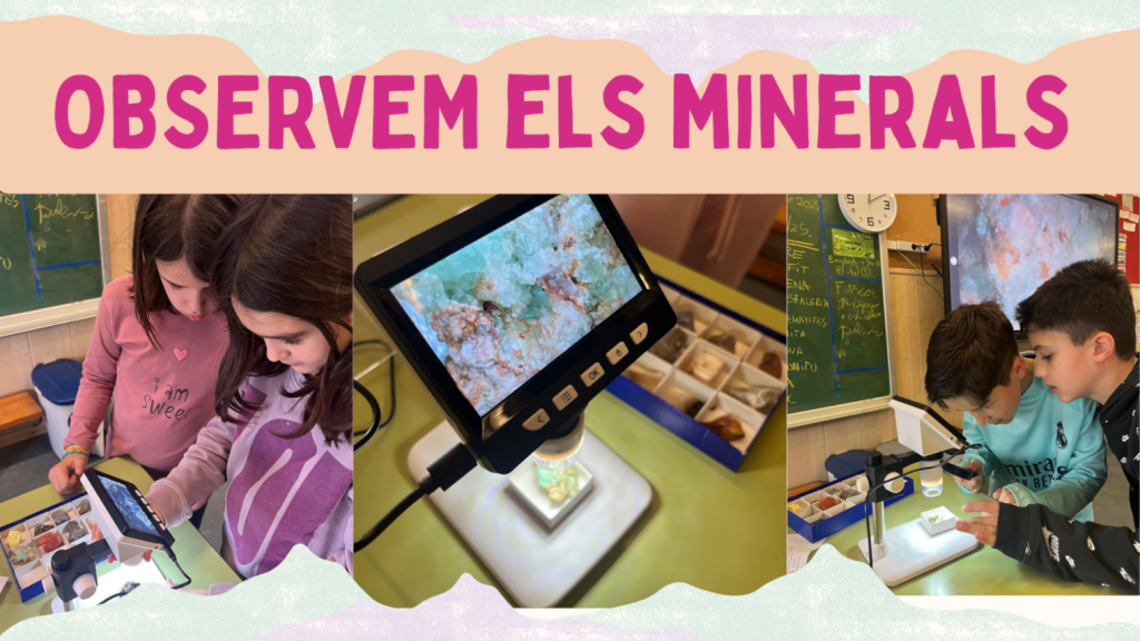 Aquest trimestre, l’alumnat de 3r ha descobert un món fascinant: el dels minerals. Els infants han observat, classificat i experimentat amb diferents tipus de minerals per conèixer-ne les propietats. Han utilitzat microscopis, han mesurat, han fet taules de dades i fins i tot han creat representacions artístiques! Ha estat una experiència rica i molt vivencial que els ha connectat amb la ciència i la tecnologia del dia a dia. Us convidem a conèixer tot el que hem après i experimentat! L’activitat s’engloba dins del programa d’innovació STEAMCat del Departament d’Educació.