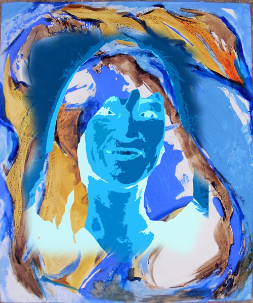 En aquesta activitat he fusionat la meva imatge amb un quadre també realitzat per mi. El primer pas ha esta manipular la fotografia amb diversos filtres i integrar-la al fons del quadre amb el programa Macromedia Fireworks, creant una composició personal del meu autoretrat.