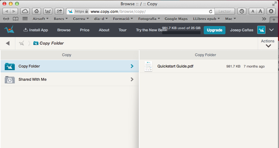 Dropbox és gratuït, per tant, podem pujar arxius i guardar-los com a còpies de seguretat amb una capacitat de 2 GB. Volem més? Doncs hi ha uns plans d’ampliació, que per quantitats reduïdes et permet 20 GB de capacitat. Segurament molt més econòmic que qualsevol disc dur. És més, la capacitat de tenir els arxius fora de la zona treball et permet no emportar-te disc durs a casa.