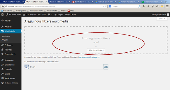 Per inserir-les, la millor opció és situar-les a la Mediateca del blog.  Quan us trobeu editant l’article o pàgina, haureu de seguir aquest passos: