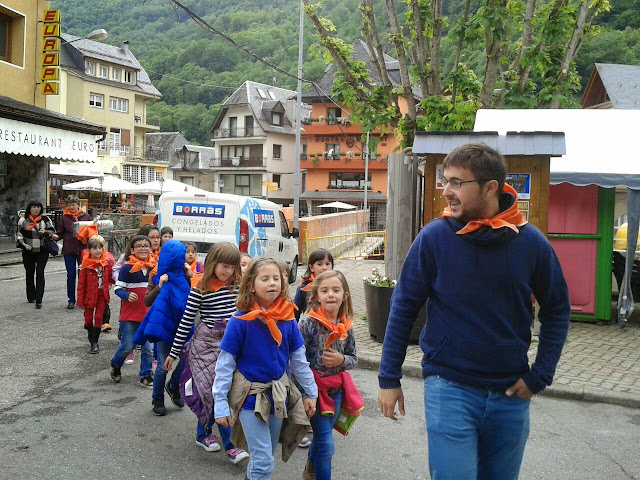 Es mès petitonhs der estudi s’amassèren en tot arribar dera piscina e tanben se hèren era fòto damb eth mocador.