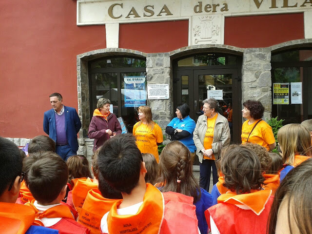 Un còp toti aquiu, eth senhor baile, era directora dera Aula Espitalària e representats d’ASVOLCALL (volontaris dera Caisha de Lhèida) e era directora deth centre mos receberen. Arribat eth moment les hèrem entrega deth nòste trabalh -Un calligrama hèt pera mainadèra dera escòla- e d’un haro.