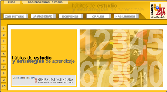 Iniciativa de Miguel Hernández Universitas, amb la col·laboració de la Generalitat de València, on s’ofereixen diversos consells i activitats per contribuir a la millora dels hàbits d’estudi de l’alumnat.