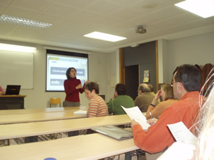 El divendres al matí, la Concha, també de la oficina nacional a Madrid, va anar més al gra i ens va explicar com és un projecte: des de la recerca de socis, passant per l’el.laboració d’un projecte comú, desenvolupament… i va remarcar molt especialment que se’n fes difusió: dins del mateix centre, municipi i l’administració. Seguidament hi va haver un “speed dating” on va ser quan es van realitzar la majoria d’agermanaments. I finalment, en César i la Concha ens van mostrar tota una sèrie d’eines molt útils a l’hora de realitzar els projectes; com poden ser: els edublogs, els wikis, google maps, audicity (editor d’arxius mp3 i wav), www.voki.com (on es poden crear imatges, gravar veus…) i com s’havien aplicat en diferents projectes reals.