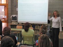 Es va iniciar amb una conferència de la Dolors Masats de la UAB sobre escoles agermanades. Si voleu donar un cop d’ull a la presentació, està penjada al web del CRP de Badalona.