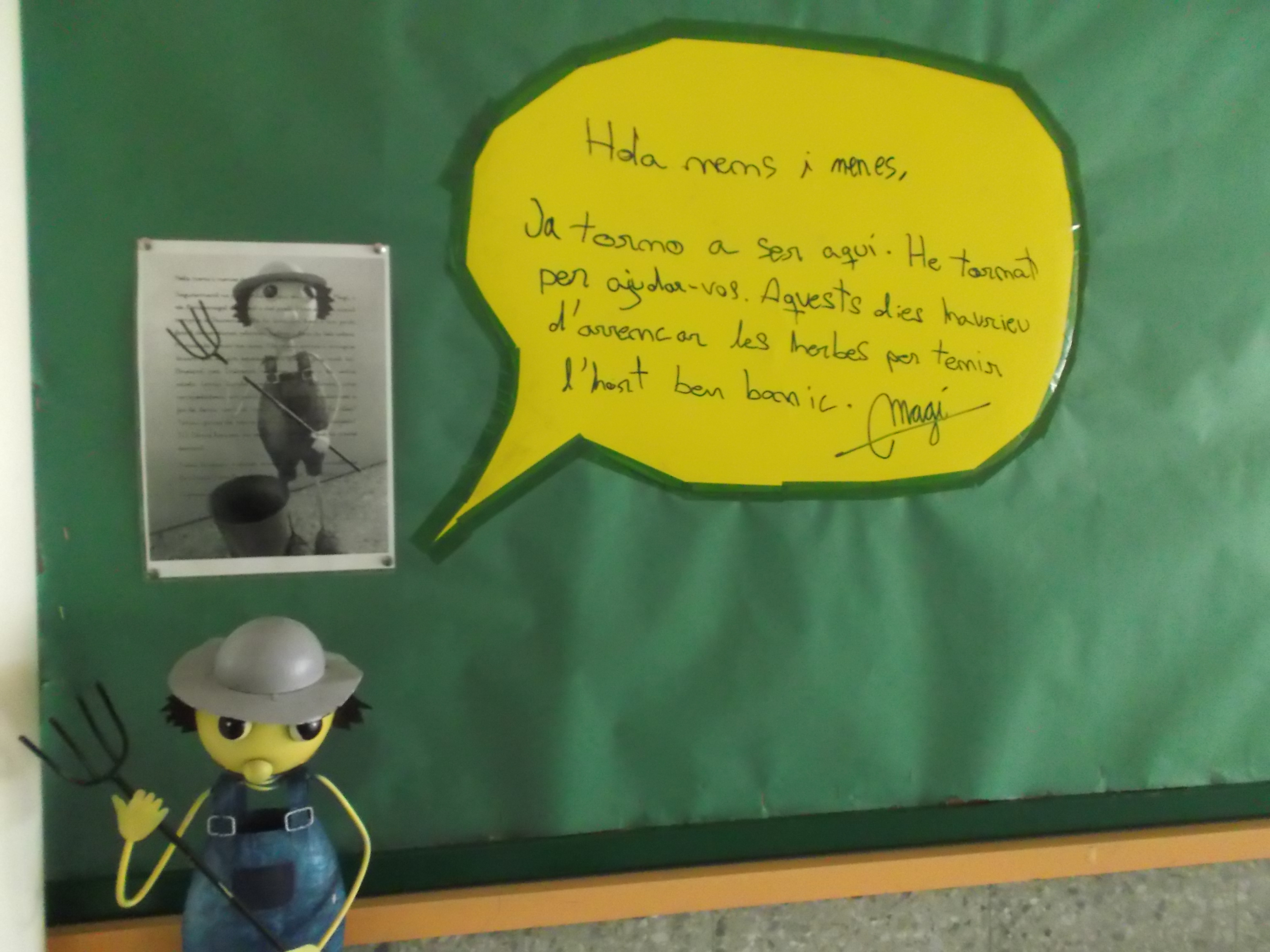 EN MAGÍ HA TORNAT! General12 octubre 2013Sense comentaris En Magí ha tornat per ajudar-nos amb l’hort i el jardí. Els nens i nenes de 6è hem seguit les seves indicacions i estem deixant un hort ben net Roger i Neus