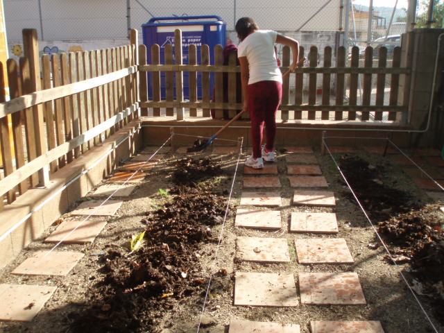 OBRIM LA COMPOSTADORA! General13 novembre 2013Sense comentaris El passat divendres vam obrir la compostadora. Vam tenir molta feina i vam treure molt d’adob! Amb l’adob que vam treure el vam repartir a les parcel.les per fer la plantació de tardor.