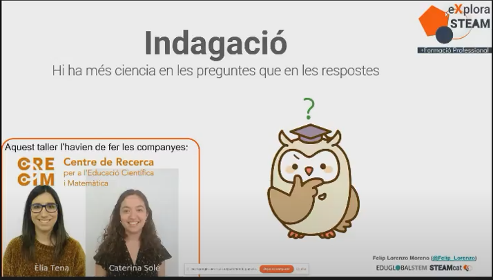 En aquest taller indagarem, aprendrem i construirem el concepte d’indagació a partir de dinàmiques i d’exemples que s’han dut a terme tant a primària com a secundària.