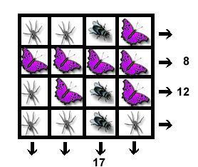 Si a cada insecte li donem un valor numèric. Quin nombre representen les aranyes, les papallones i les mosques?