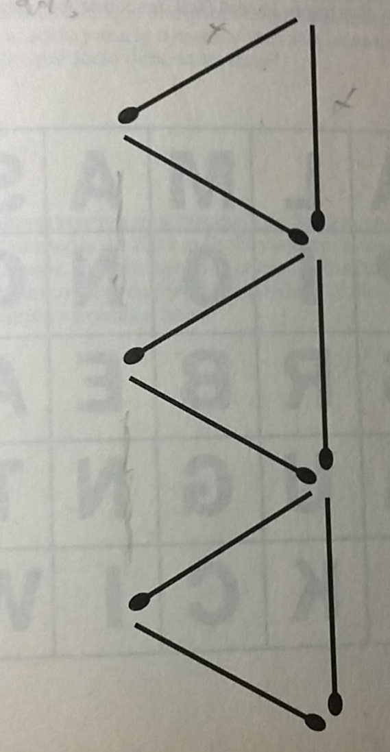12-Aquí tienes tres triangulos, mueve tres cerillas de lugar para conseguir cinco triangulos