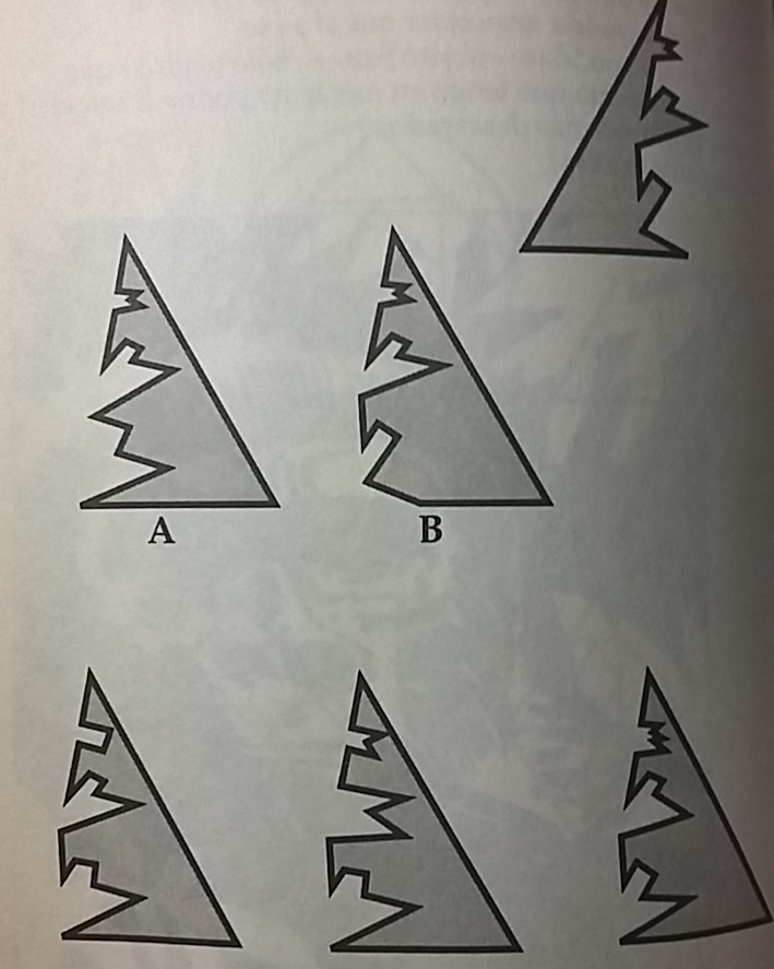 2-¿Cuál de las siguientes figutras forma un triangulo perfecto cuando unimos los dos trozos?