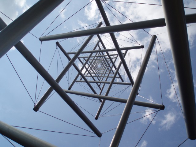 La Tensegridad es un principio estructural basado en el empleo de componentes aislados comprimidos que se encuentran dentro de una red tensada continua, de tal modo que los miembros comprimidos (generalmente barras) no se tocan entre sí y están unidos únicamente por medio de componentes traccionados (habitualmente cables) que son los que delimitan espacialmente dicho sistema.