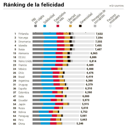 L’economista Richard Easterlin deia que normalment creiem que els països més feliços són aquells amb major poder econòmic i que per tant els països més infeliços són els que tenen un poder econòmic menor. Però no necessàriament ha de ser així. Easterlin va demostrar que si comparem els nivells de felicitat d’una població amb 2000 € de renda mitjana amb un altre amb una mitjana de 1000 €, podem observar que no hi ha diferencia. I a més afirma que superats els 15000€ de renda el nivell de felicitat es queda totalment estancat.