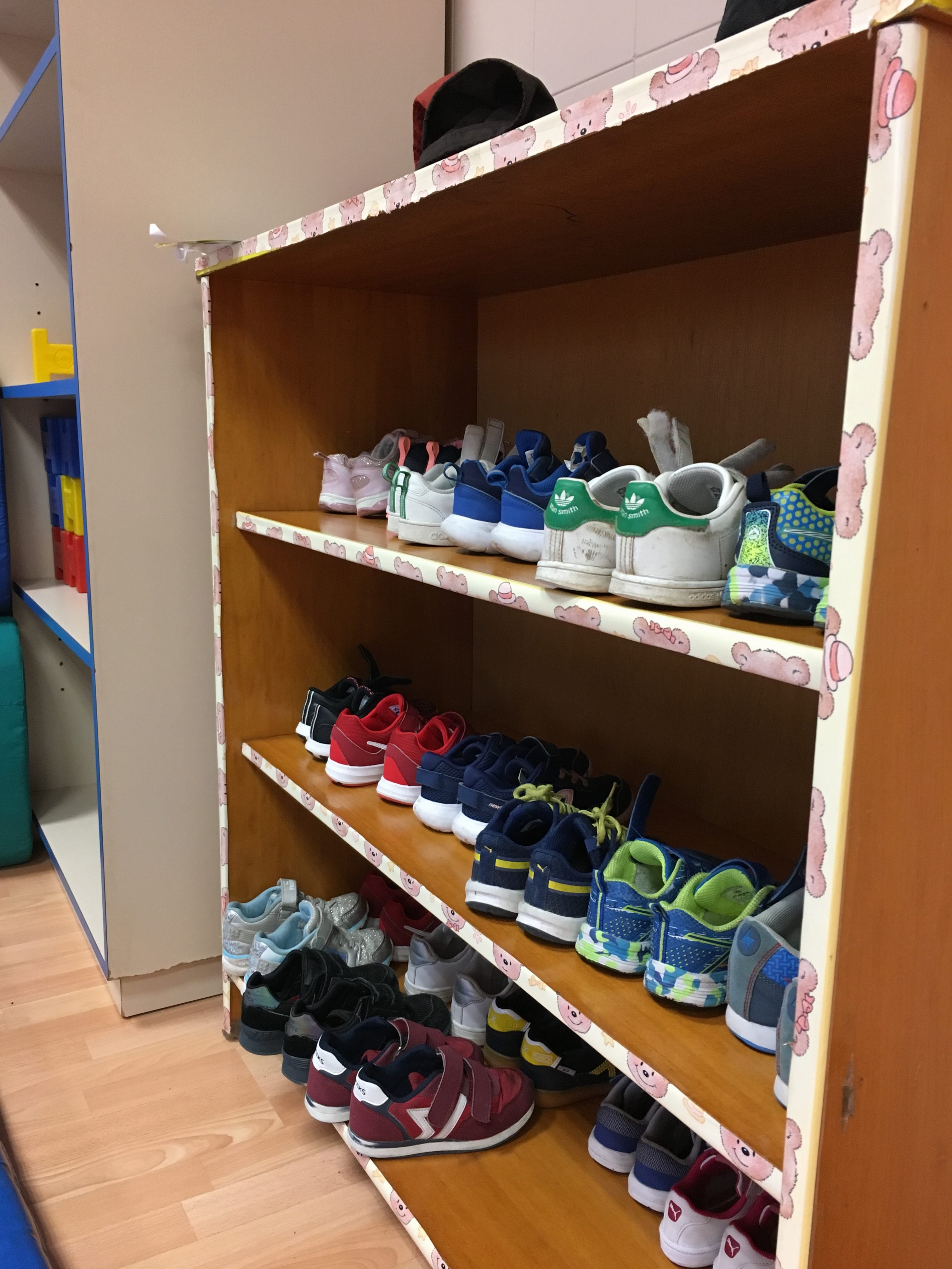 Avui no he pogut resistir a fer la foto a una imatge que encara que sigui inusual a la nostra sala passa sempre. L’ordre en que els nostres alumnes deixen les seves sabates al seu lloc! Normalment la sala mostra un desordre, fet provocat per la pràctica psicomotriu, però aquí us deixem la mostra de que els més petits de la casa tenen cura del material i de les seves coses. Aquest ordre forma part dels hàbits higiènics que els nens van adoptant a l’escola.IMG_3851