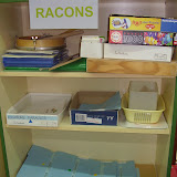 Un cop per setmana tenim planificada una sessió de treball per racons. Cada taula treballa algun aspecte del llenguatge escrit (copiar paraules, aparellar dibuix amb paraula, aparellar dibuix amb frase, ordenar títols de contes, memoris de paraules, grafomotricitat…). La part lúdica de l’enfocament d’aquestes activitats fa que aprenguin sense adonar-se ja que han d’utiltizar estratègies per llegir.
