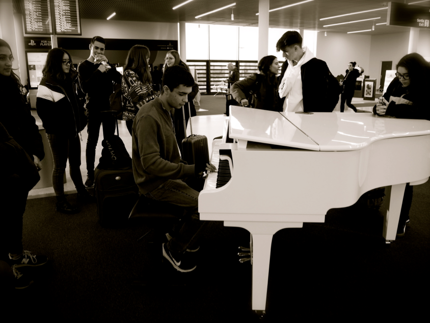 La setmana passada, els alumnes de 2n de Batxillerat, el Cesc i la Tate vàrem anar a París. A l’aeroport d’Orly, a l’arribar, hi havia un piano de cua. El Pau va inaugurar el viatge tocant “La Valse d’Amélie”.