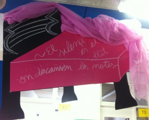 De la unió dels professionals de la música (professors de l’aula de música) i del teatre (Elisabet Vallès, actriu) va sorgir l’any 2013 el primer espectacle pedagògic musical: “Del revés”. Un viatge pel món i les seves músiques.