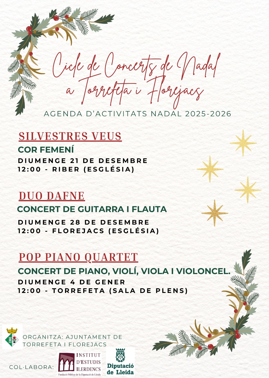 Dins de la programació del Cicle de concerts de Nadal a Torrefeta i Florejacs, el diumenge 28 de desembre el Duo Dafne va oferir un recital de música amb flauta travessera i guitarra.