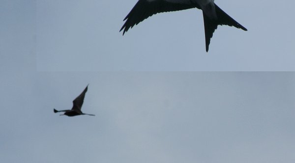 La Fregata sempre la vam veure de lluny ran de la costa o una mica mar endins, amb moviments molt ràpids. Per això no vam poder aconseguir cap bona imatge. Tot i ser esvelta i elegant, és un ocell paràsit o pirata, ja que roba la pesca que han aconseguit altres ocells. Segurament es tractav de Fregata grossa (Fregata magnificens).