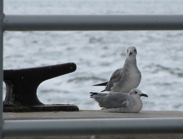En els seus embarcadors hi vam trobar diversos exemplars de Gavina capnegre americana (Leucophaeus atricilla). Lers dues imatges següents són la mateixa espècie en dos estadis diferents.