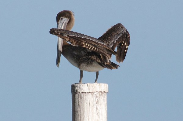 Un dels ocells que impressionen per la seva corpulència és el Pelicà (Pelecanus occidentalis). També el vam trobar pels ports.