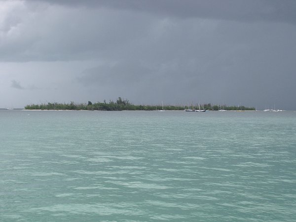 Wisteria island, cayo deshabitat vist de de Cayo Hueso i visitat per múltiples embarcacions de lleure sota un cel que anunciava la tampesta d'aigua, llamps i trons que va caure al cap de poc