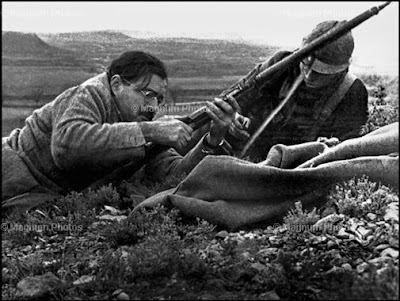 Fotografia de l’escriptor i periodista nord-americà Ernest Hemingway, retratat per Robert Capa a Móra la Nova, durant una de les ofensives republicanes de la Batalla de l’Ebre. La imatge de Hemingway carregant un fusell està presa molt a prop del riu Ebre i del barranc de Brull. Així, al fons a l’ esquerra es pot veure el turó del Solà del Molló, situat a la banda dreta de la Coma del Cabo, així com una part de les finques de la partida de Les Deveses i dels Comuns, al sud del terme de Móra la Nova. Se sap que Capa va viatjar al front de l’Ebre el 5 de novembre del 1938, per entrevistar Enrique Líster a l’altra banda del riu.