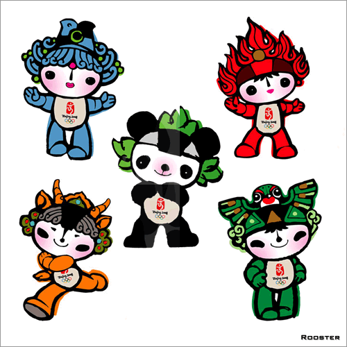 Totes elles representen un element de la natura; a més cada mascota té un color diferent; el color de cada anella olímpica: