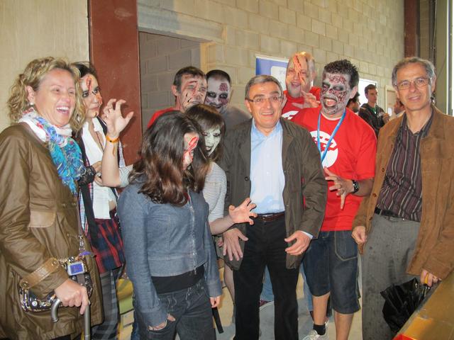 Per la tarda visita de les autoritats, l’alcalde, la regidora de noves tecnologies i el rector de la UdL, es passegen pel recinte tot contemplant el planter de ‘geeks’ amb